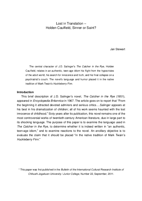 Pdf Lost In Translation Holden Caulfield Sinner Or Saint Jan Stewart Academia Edu