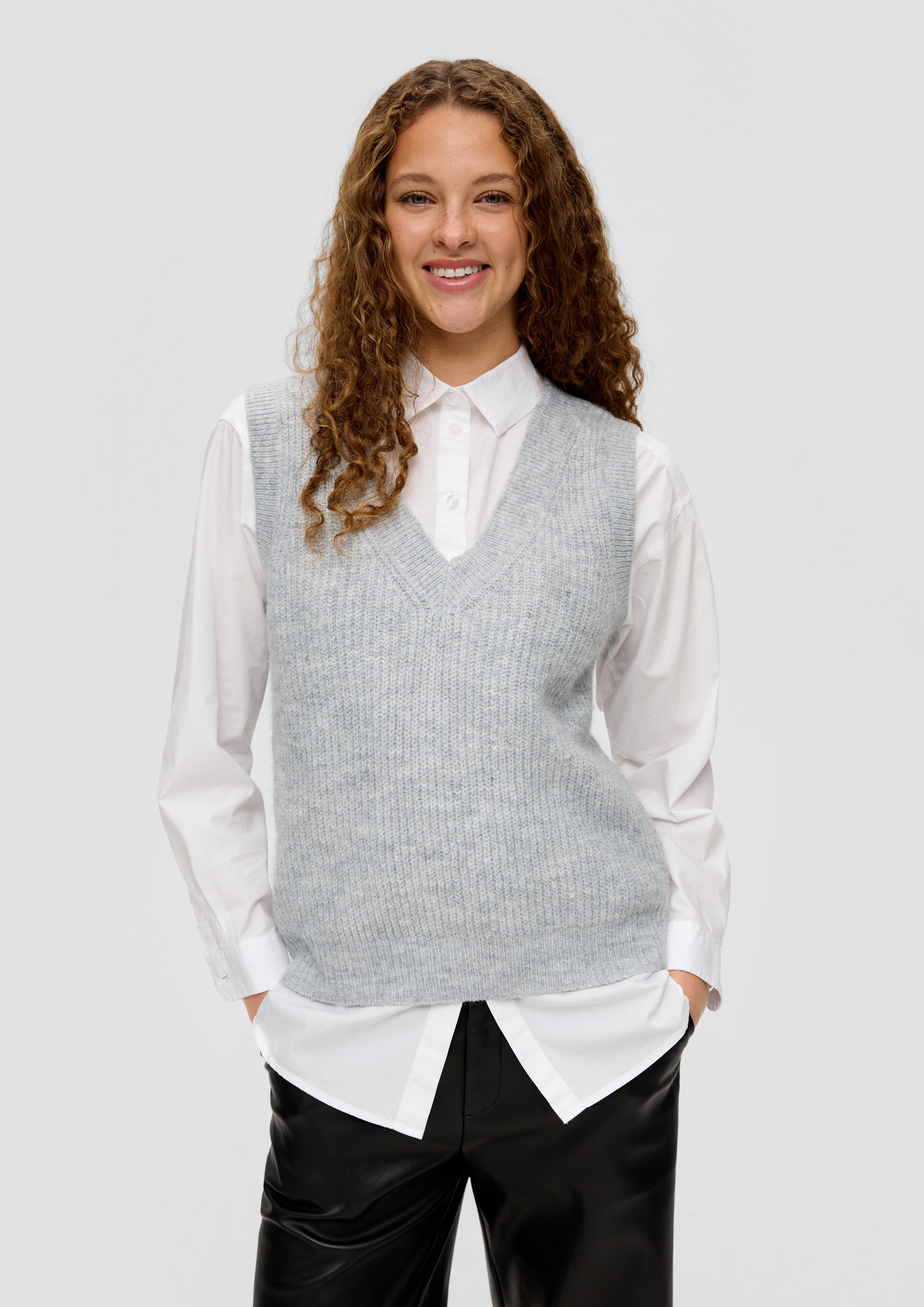 V Neck Sleeveless Knitted Jumper Grey Melange S Oliver
